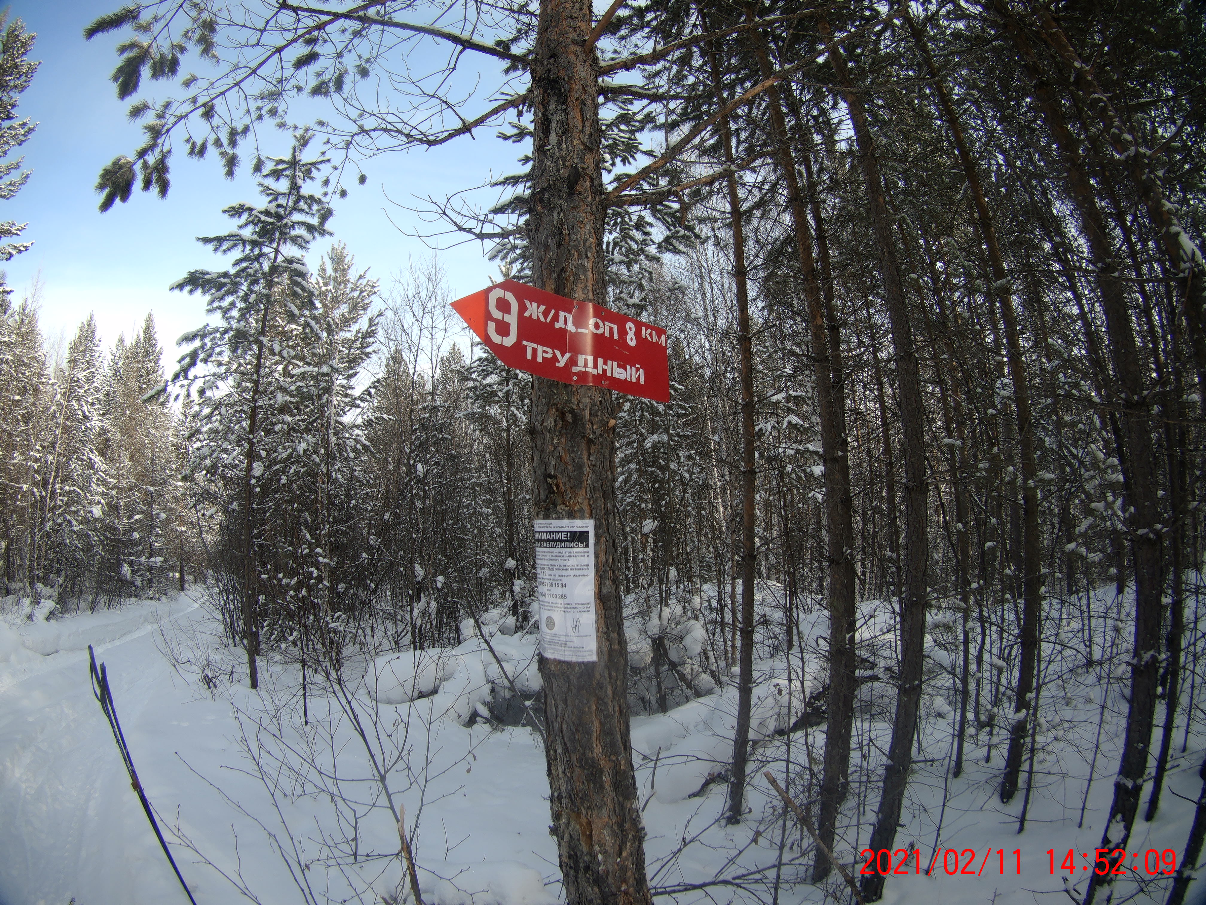 Размещена на удалении примерно 8 км от жд_оп. Трудный, вблизи лесной дороги и лыжной трассы Большого альпинистского марафона. От стрелки до жд_оп. Трудный следовать в направлении стрелки, по дороги в северо-западном 2-3 км, до выхода на лыжную трассу, продолжить движение по лыжной трассе 1,5-2 км до следующей стрелки.