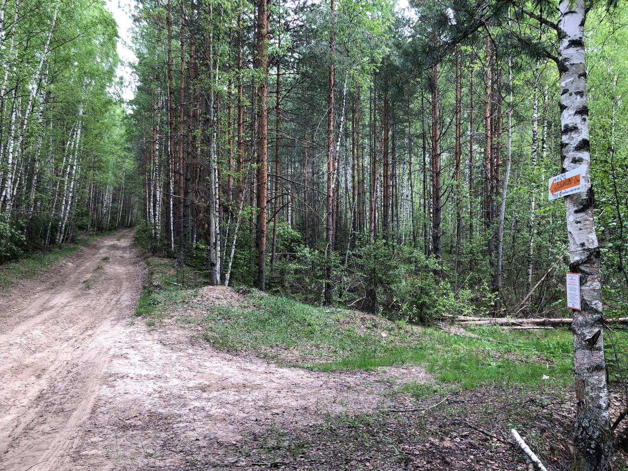 Лесная дорога от Фролихи к Вошилово. Указатель на дорогу к Вошилово А60Л