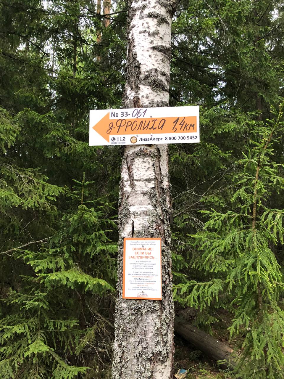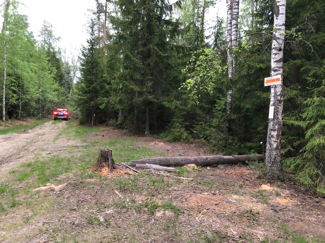 Конец проходимой лесной дороги, дальше болото. Указатель на Фролиху А020Л