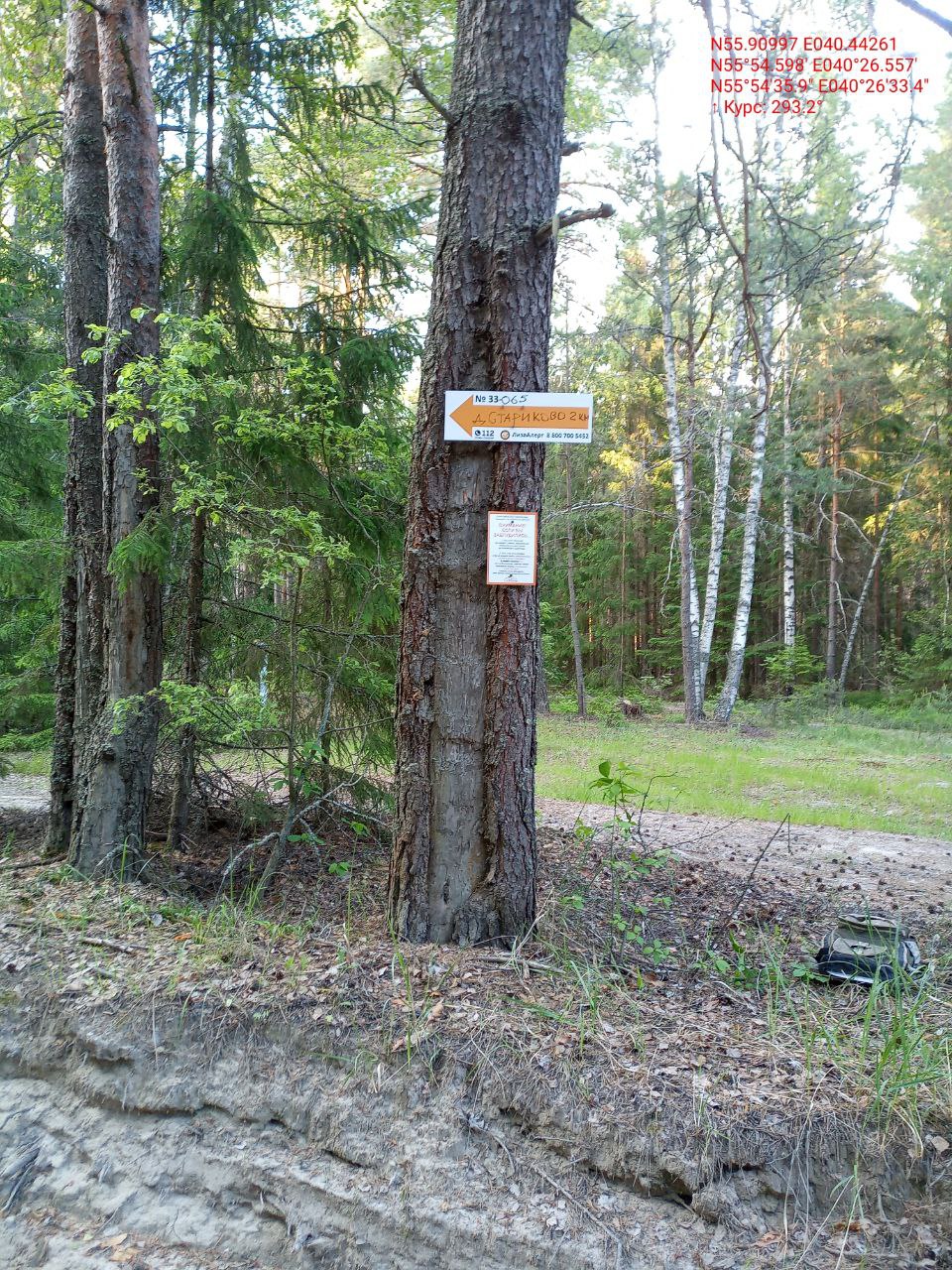 Развилка лесных дорог. Указатель на д.Стариково. А280Л