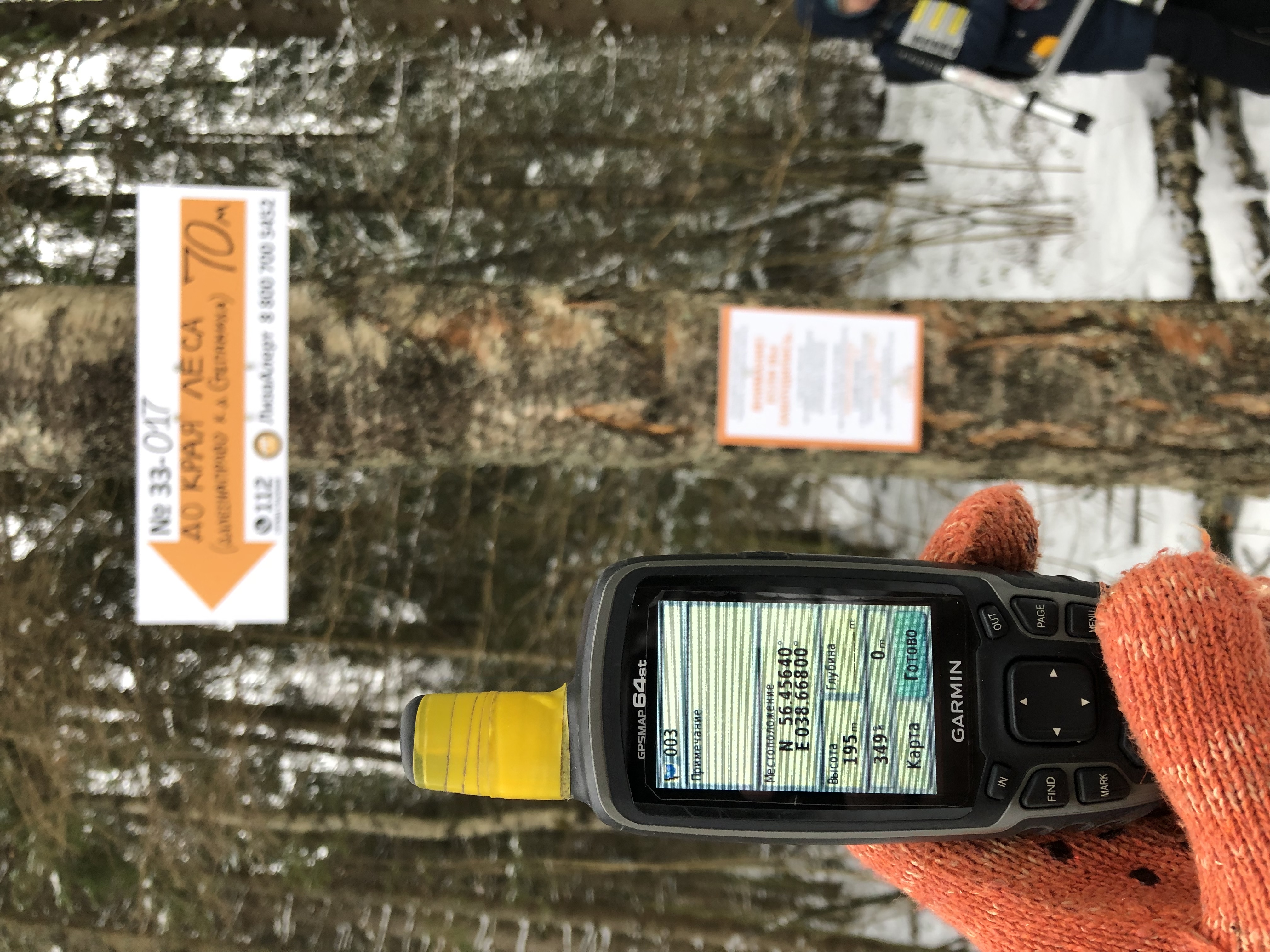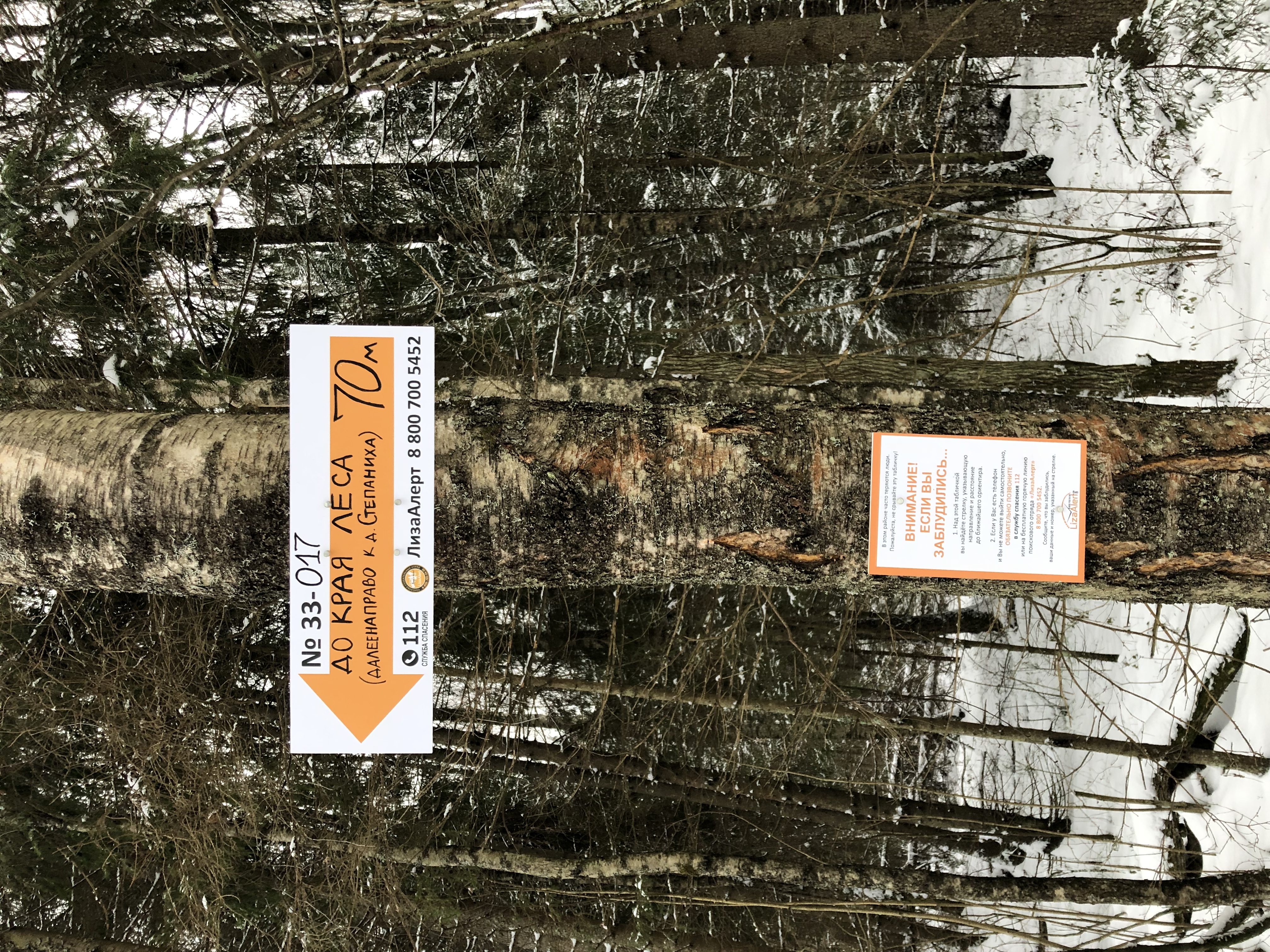В этом месте хорошо различимая просека заканчивается. Указатель на край леса, где идет дорога на д.Степаниха, на стрелку 33-016