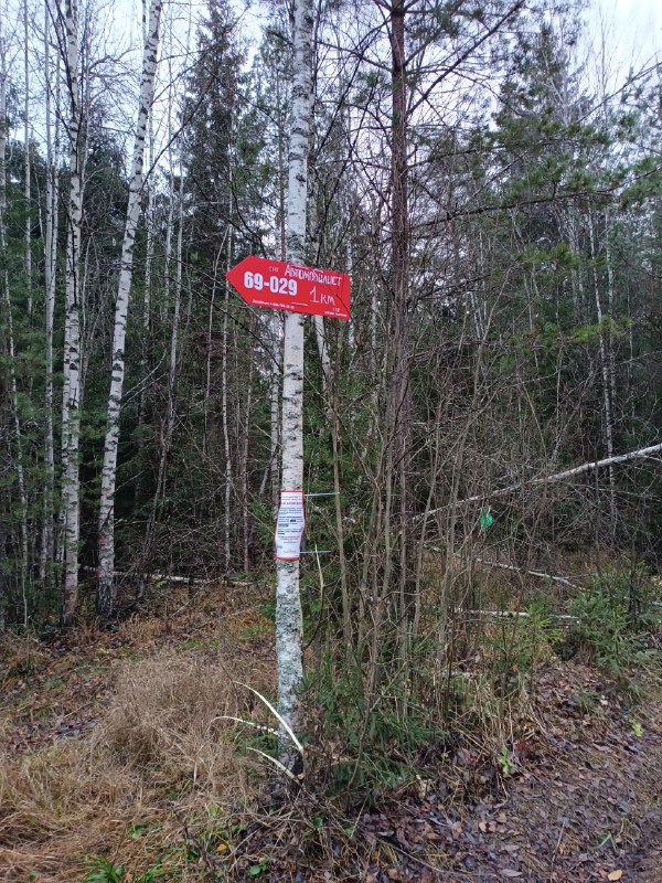 Азимут стрелки: 232Установлена на дереве на развилке между дорогой-газопроводом и отдельно уходящей дорогой. Указывает направление вдоль газопровода к СНТ Автомобилист, до которого 1 километр. По пути к СНТ есть вероятность наткнуться на стрелку 69-021Информация о местности: лёгкая. По дороге можно легко добраться до населённых пунктов.