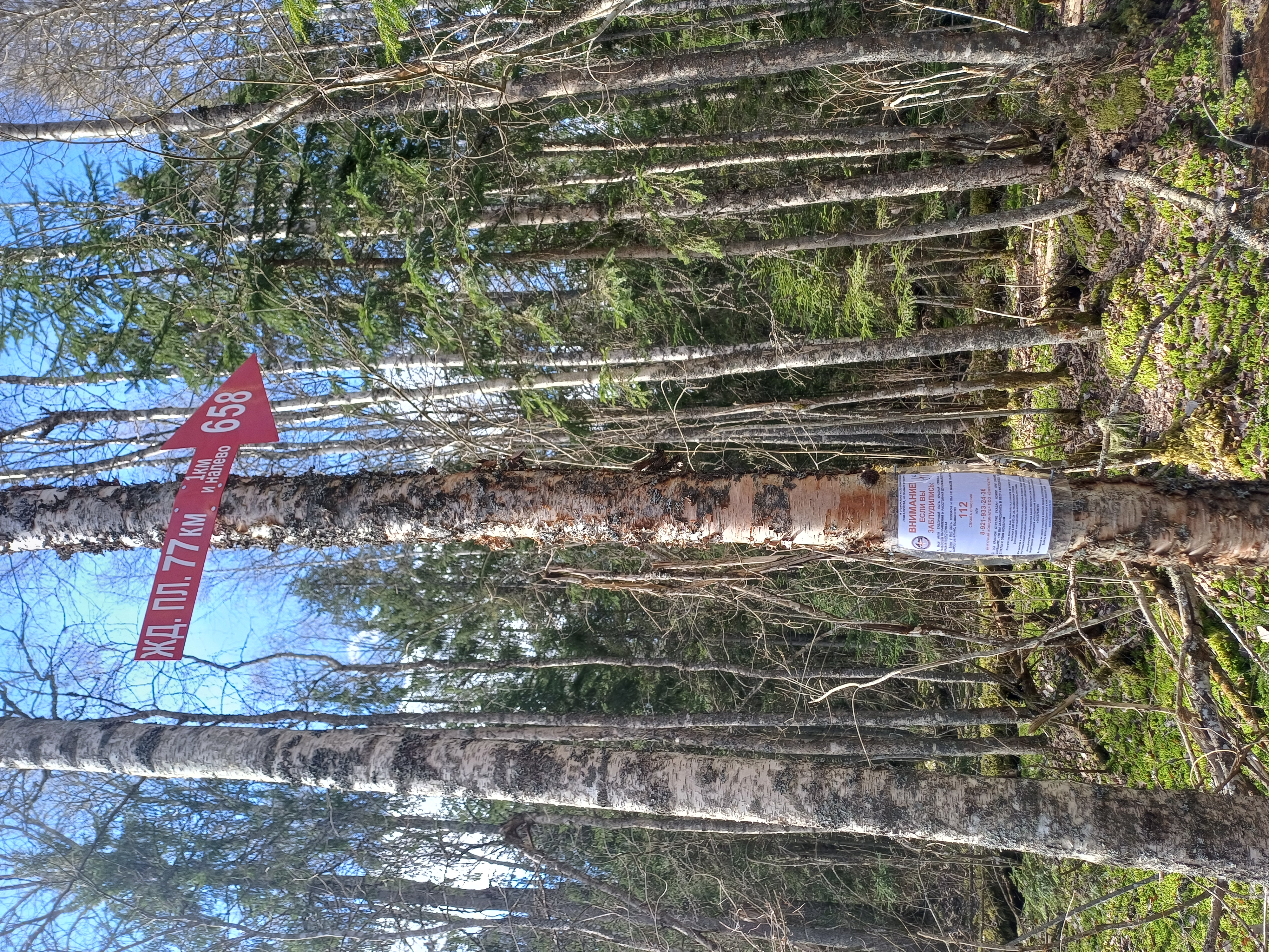 Надпись на указателе: |  | жд. пл. 77 км 1 км и налево