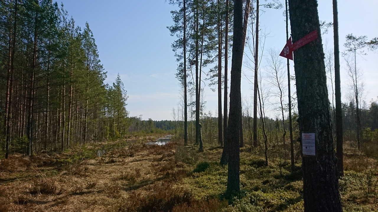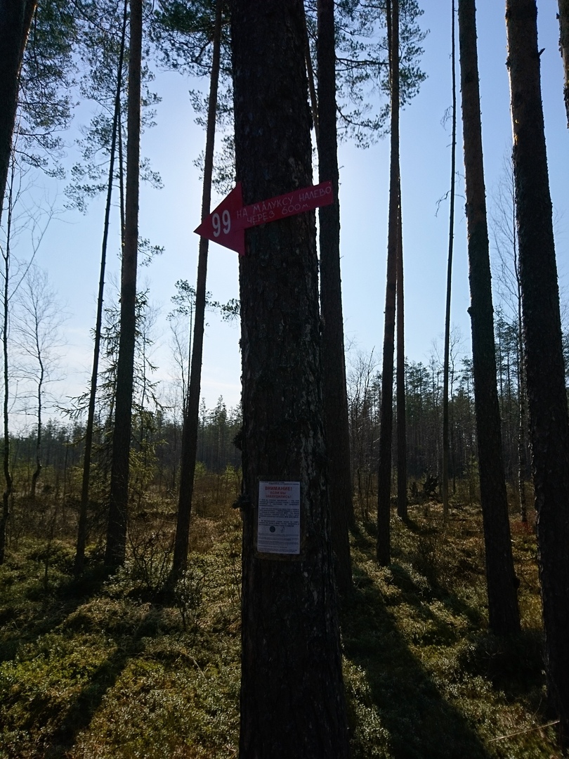Установлена на старой дороге на границе молодого леса.