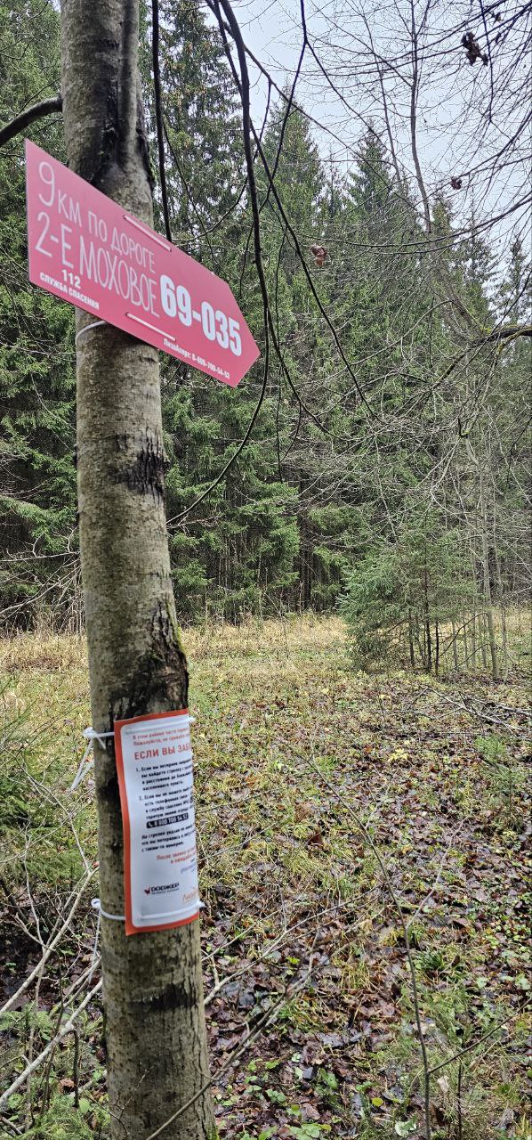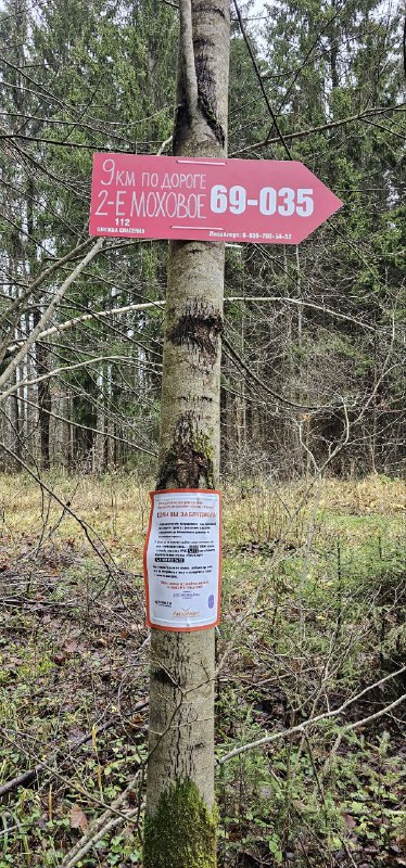 Информация о местности: Крайне тяжёлая местность, окружённая со всех сторон природными ловушками и имеющая следы присутствия диких животных. Указывает в сторону 2-е Моховое, но местность, что в сторону СНТ Автомобилист, то и в сторону 2-е Моховое вынуждает пересекать воду с наличием глубоких мест (глубже 0.5 метров). Указатель ведёт по дороге к стрелке 69-036. Где-то половину пути дорога полностью или частично затоплена. Обходить пришлось достаточно далеко от дороги. Там же были найдены следы присутствия диких животных (лось, медведь)